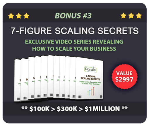 The final bonus is an exclusive video series on SCALING – specifically on how to take your business from the $100k/year mark, to $300k/year, then on to $1 million/year and beyond.